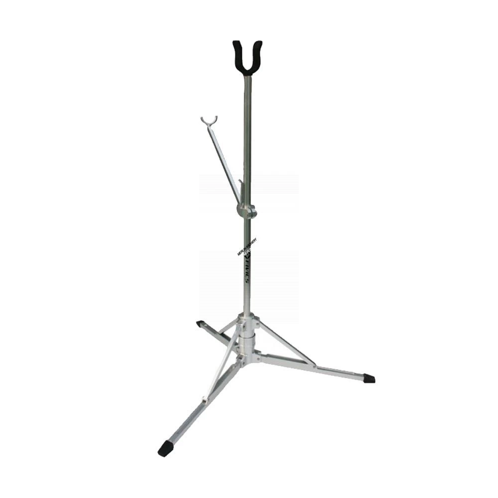 Ultra-lightweight portable bow stand with automatic fold-out legs that deploy with a simple twisting motion.